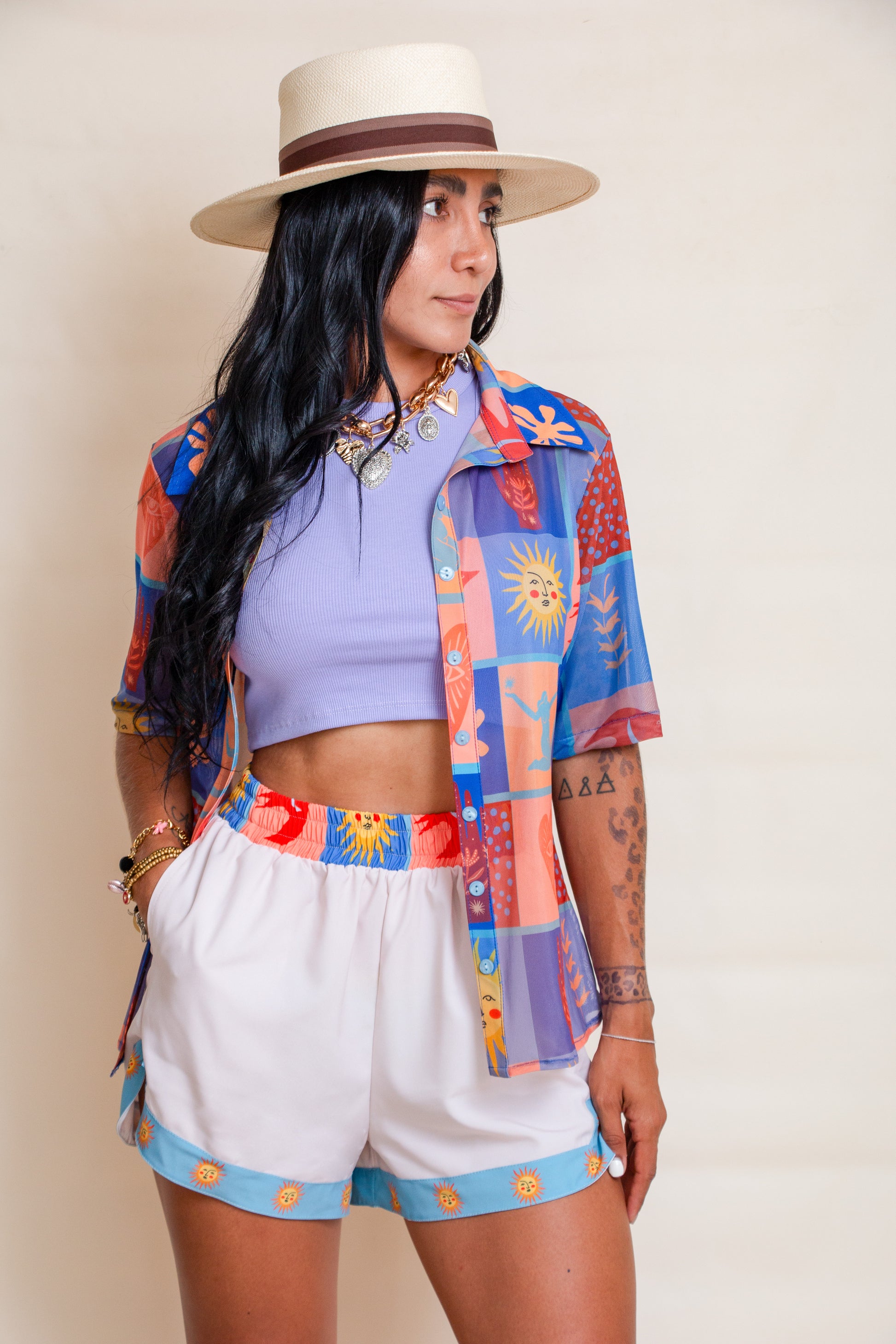 Conjunto versátil compuesto por tres piezas esenciales: una camisa estructurada, un top de corte minimalista y un short de línea limpia. Esta combinación permite múltiples opciones de estilismo, desde looks casuales hasta propuestas más refinadas. Cada prenda ha sido seleccionada para garantizar comodidad y versatilidad en tu guardarropa diario.
